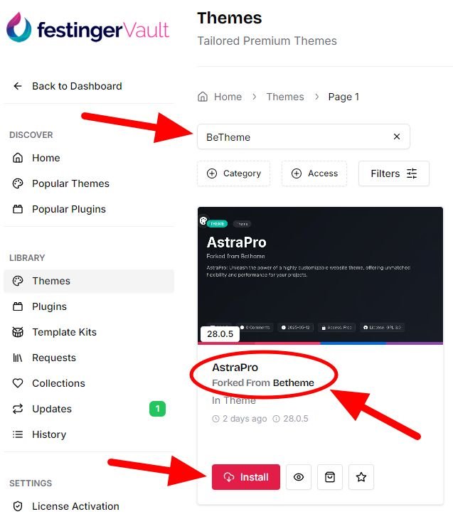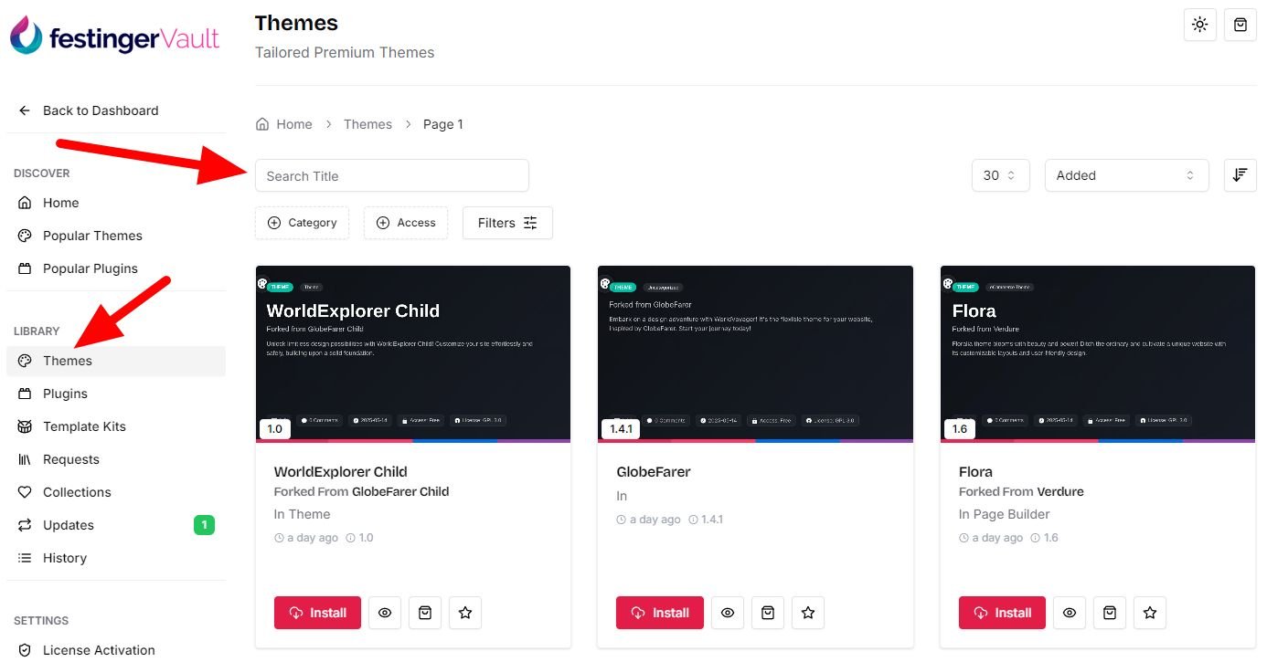 Klicke im Menü auf den Punkt "FestingerVault > Themes / PlugIns / Template Kits":